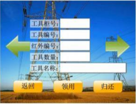 通过“工具领用”操作,我们可以领用工具柜中的安全工器具,在这里,我们需要输入工具数量、用户编号、用户密码。