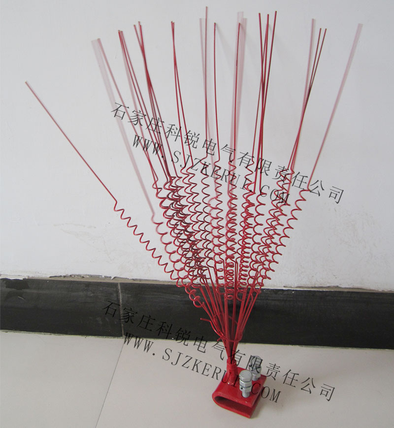 驱鸟刺常采用直径为2毫米的钢丝,中间螺旋式(弹簧式)结构,增加了弹性,使得鸟类无法停留而飞走,不但保障了电力安全,还避免了对鸟类的伤害。