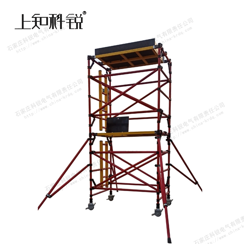 上知科锐绝缘脚手架优势:绝缘杆选用乙烯酯树脂双层缠绕,绝缘杆有韧性而且抗拉能力强,连接件全部采用防紫外线尼龙材质。