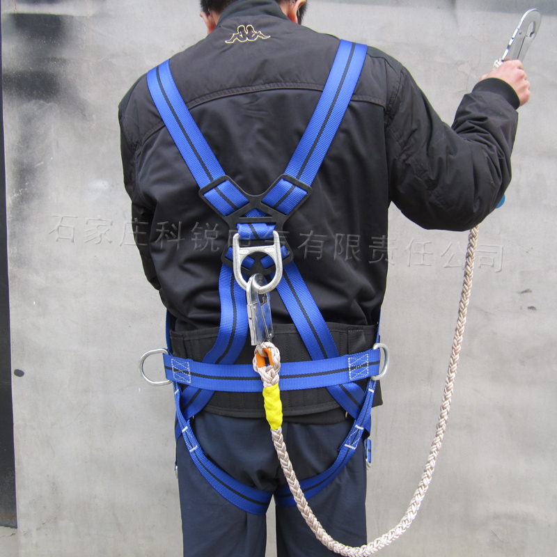 前面的是架工带,后边的是电工带。电工带上的蓝色品环为金属套塑料件,不容易磨损绳子。后背绳可以根据客户的要求包上胶皮如下图: