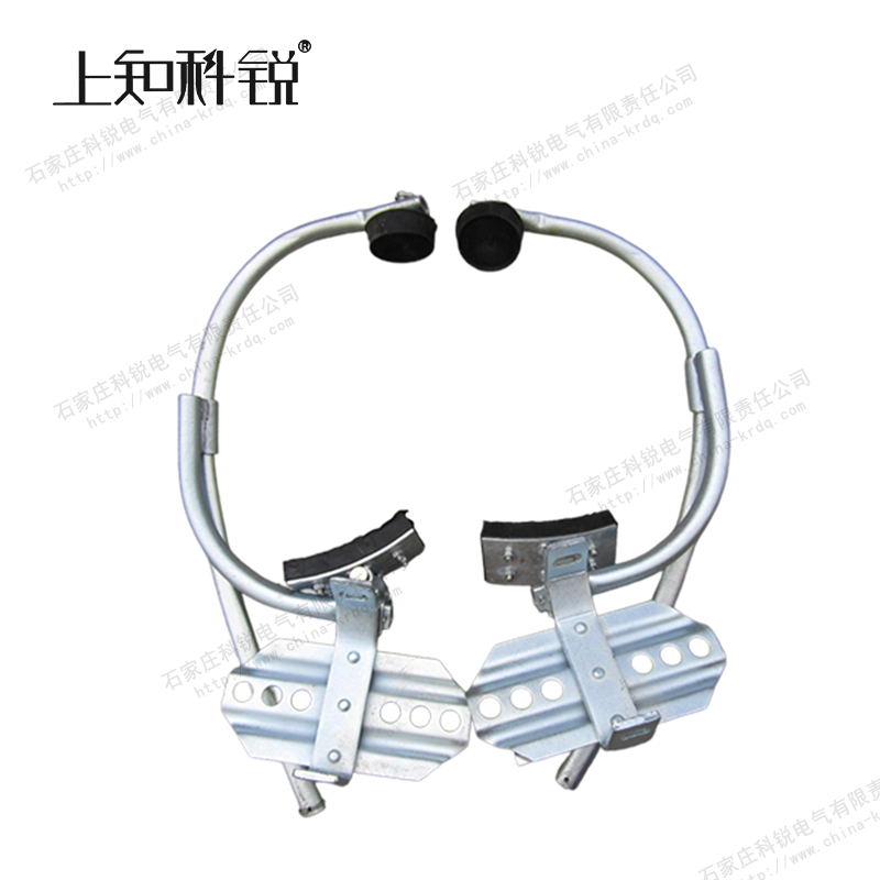 2.分类:有三角管(较多)、圆管和方管的。根据使用情况可分为变径脚扣和等径脚扣。如果电线杆上细下粗,则用变径脚扣;如果电杆上下等径,则用等径脚扣。