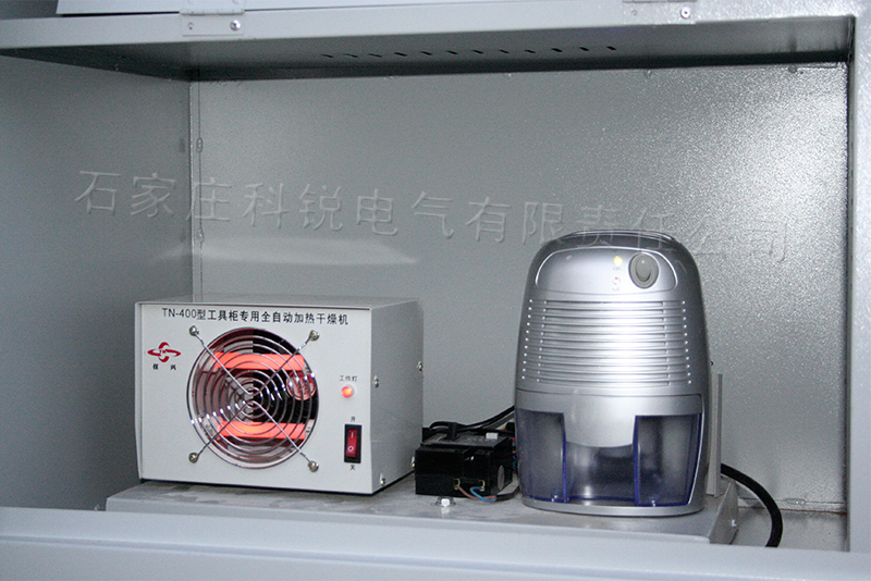 智能工具柜可以设置指纹锁、配备了烘干机冷凝机、数显控制器。别看只是这几个项目的增加,其实他们的功能还是挺全面的。比如:烘干机和冷凝机可以升级成为了压缩机,能保证在15分钟内使柜内的相对湿度从90%将至40%,柜内温度控制在35℃及以下。配有压缩机的一般也有水满预警设置。