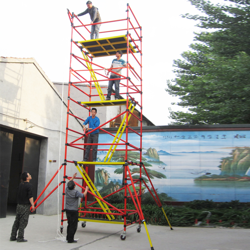绝缘脚手架是以玻璃钢为主要构件的高空作业平台,整体具备优良绝缘性能,可有效防止触电事故,专门用于带电作业附近、变电站、配电室等对绝缘有要求的场所。