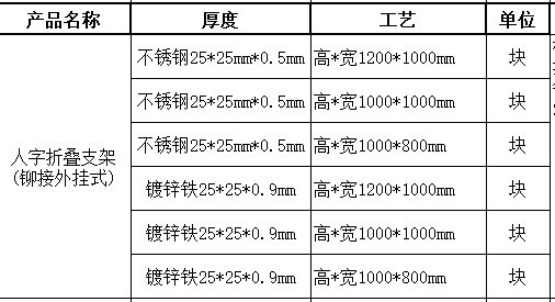 产品名称:人字折叠支架(铆接外挂式)